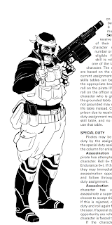 Piracy starts at 18 otherwise. 7+ to get in, with +1 if Social is 7- and +2 if Endurance is 9+. It does note that there is no formal entrance to get in: getting abducted is one way. The example is given of using the Other character generation as your entrance to becoming a pirate, or just plain GM fiat. There is an interesting note that “unlike other professions, pirate draftees are able to be promoted in their first term of service”. Ahh, yes, the other advanced character generation the 1st term is basic training. So not so odd other than there is no basic training for pirates: into the deep end first!