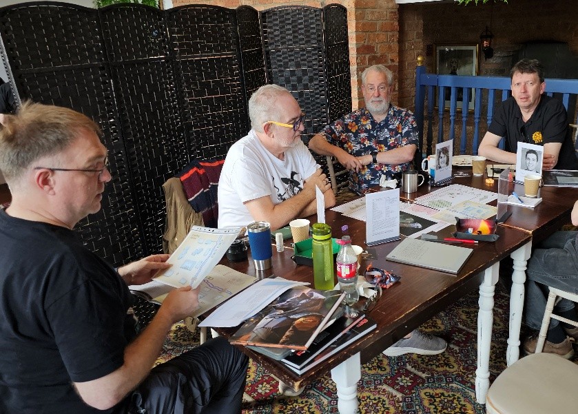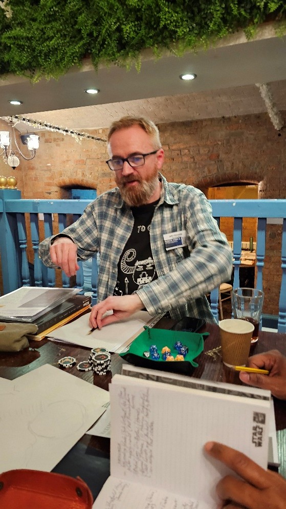 In this slot you could also have been playing: “The Third Horizon” (Starforged), “Horror Movie Mayhem” (Tales From the Loop), “Another Bug Hunt” (Mothership), “Break On Through (To the Other Side)” (Savage Worlds), “Mysteries On Arcturus Station – The Hunt for Sabre IV” (Mongoose Traveller 2nd Edition), and “Everlight” (Fading Suns). Dom’s teaser for the new prelude to the classic Traveller adventure “Murder on Arcturus Station” read: “As experienced corporate troubleshooters, you’ve been hired by the mining company Lamarck Minerals, LIC to carry out an investigation to locate the Sabre IV, a 1500dT, 310 MCr, jump-capable ore-carrier, which has gone missing from Arcturus Station 3, a backwater system controlled by Banasdan in the Solomani Rim. Foul play is suspected, and recovery of the carrier and its cargo is a matter of urgency.”