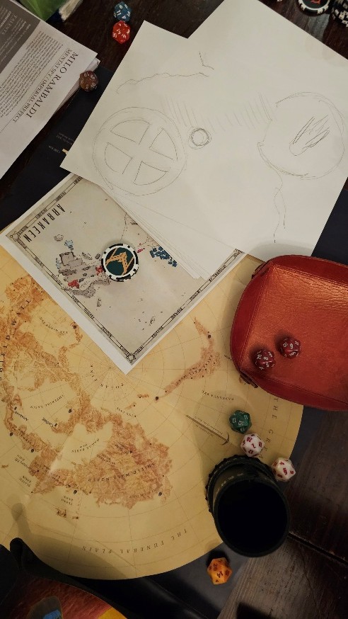 This adventure had us as a mixed team of characters attempting to track down a fabled jump key. I ended up with another female character, this one a religious type so I was able to (just barely) touch on exploring what ‘faith’ might look like in a game setting like this. It was fun adding a prayer at one point (which mechanically helped another character do a task) and I would like to have done more of this kind of thing. Instead, it was appropriate for my character to check out the archives which may also have been rather playing to type, but I enjoyed trying to extract the maximum I could from them (and the nice young archivist) even when I was relatively sure the adventure wasn’t ‘here’. Tom Z picked Tiv, a Decados character (think ‘decadent noble’), and really went to town with his depiction of a very odd personage! At one point my notes say he was “half dressed as a nun” but I can’t quite recall why. That sounds like Tom, sorry, I mean Tiv. I could have sat and watched his role playing all day.
