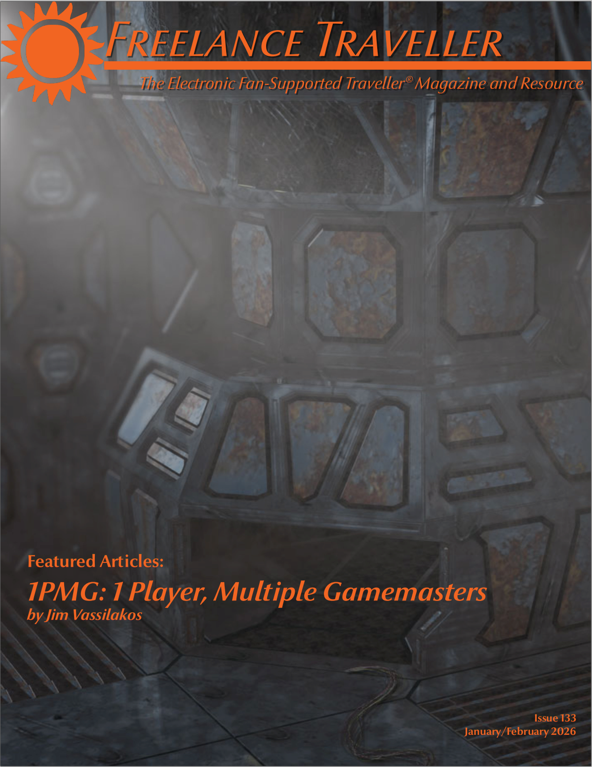 This is the first issue of the seventeenth year of publication of Freelance Traveller. I will admit, I never expected it to last this long – but the community exceeded my expectations of support. More, I’ve received email thanking me for specific articles (which I’ve always forwarded to the author if I have a current email address) and describing how it fit into (and possibly improved) a session or a campaign. That is why I created Freelance Traveller originally: it was intended to be a community resource for Traveller, not an ego trip for me. It’s also been a learning experience, for all sorts of topics relating to publishing, from being an Editor (as opposed to a mere copy-editor) to being a web page designer (still not one of my strong suits) to being a curator of a collection (of articles) to learning about fonts and page layout to…